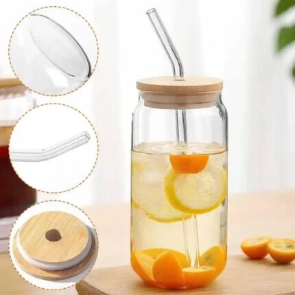 500ml glass cup with bamboo cover and straw
